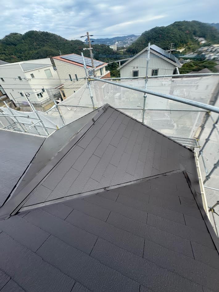 コロニアル屋根の方も必要に応じて補修を行い、下塗りを行った後、上塗り2回、合計3回塗装しています。