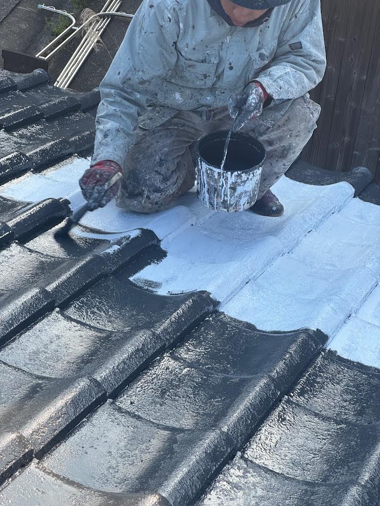 瓦の1枚1まいを職人が刷毛塗りで塗装を行っています。