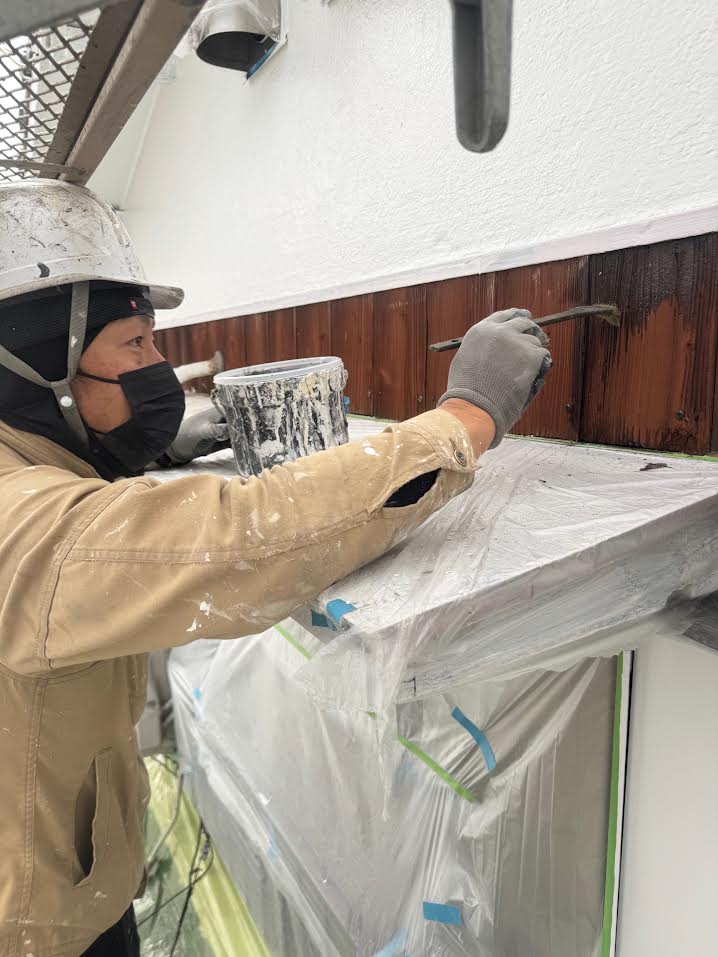↓下の写真をご覧ください。(塗装後に玄関側から撮影しています。)
