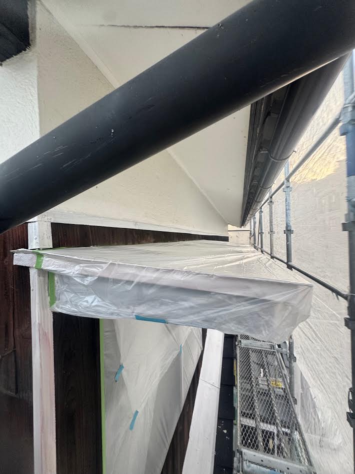 養生には、マスカー(テープとナイロンが一体になったもの)などを使用して