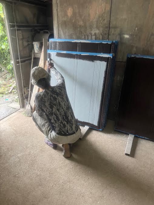 雨戸の表側、裏側も、今回は刷毛とローラーで塗りました、下塗り1回、上塗り2回塗ってます。