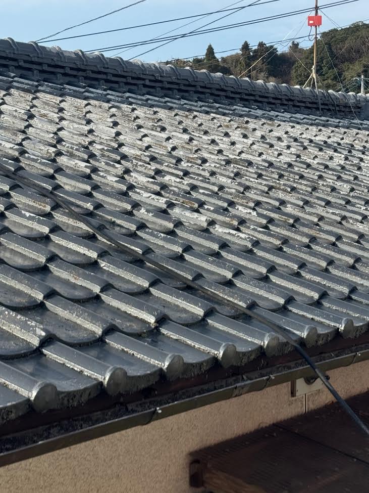 ↓下の写真をご覧ください。(セメント瓦の塗装が剝がれていますね。)