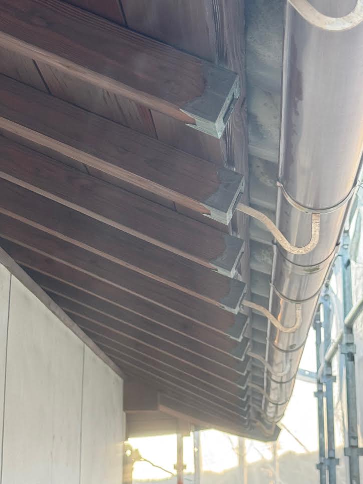 今日は長崎市平山町で軒天井や破風板など木部を木材保護塗料で塗装を行いました!