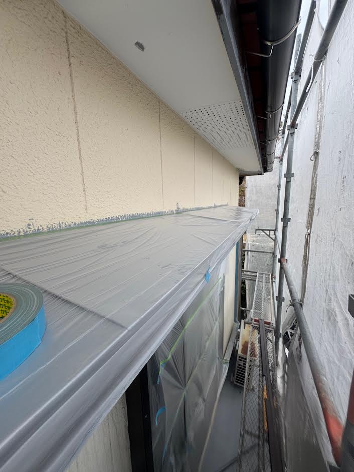 今日は長崎市稲田町で塗装前の養生を行いました。