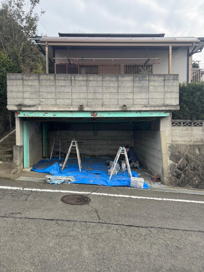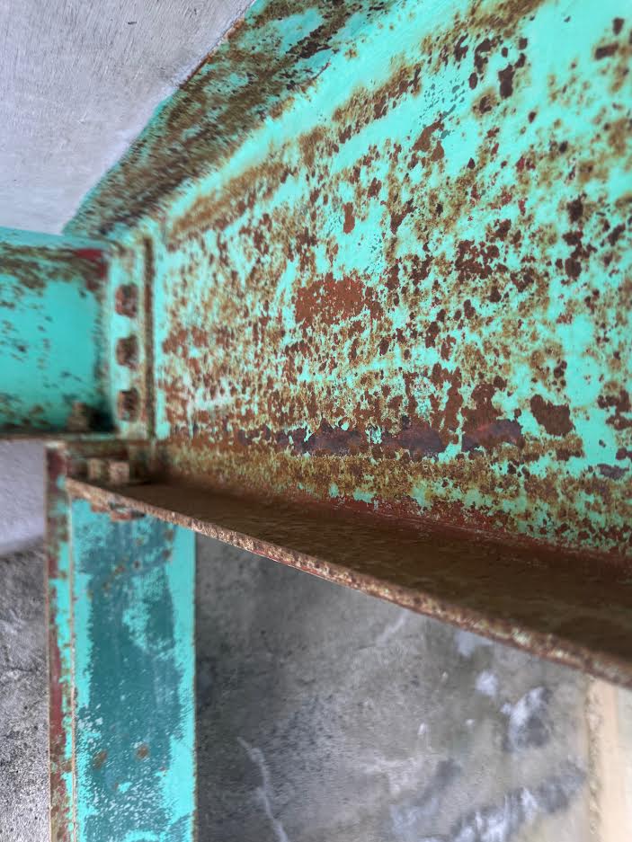 蚊焼町は海に面しており、海からの潮風で駐車場のH鋼の塗装が劣化してサビが出ている状態でした。